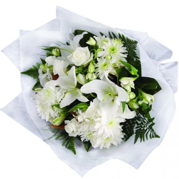 Fallegur blandaður samúðarvöndur. Kort er innifalið í verði.